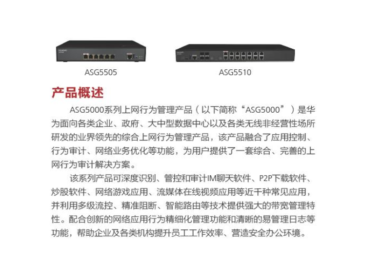 ASG5000系列上網(wǎng)行為管理產(chǎn)品(以下簡稱“ASG5000”)是華為面向各類企業(yè)、政府、大中型數(shù)據(jù)中心以及各類無線非經(jīng)營性場所推出的業(yè)界領(lǐng)先的綜合上網(wǎng)行為管理產(chǎn)品。
