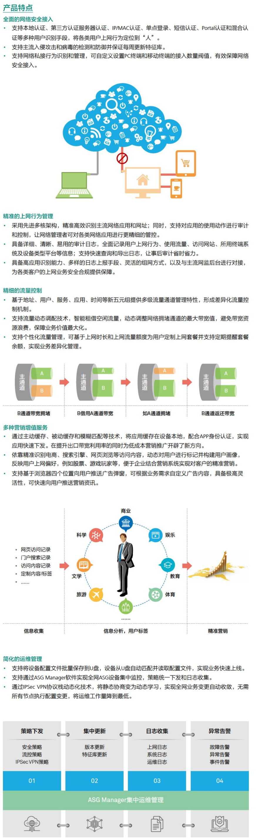 該系列產品可深度識別、管控和審計IM聊天軟件、P2P下載軟件、炒股軟件、網絡游戲應用、流媒體在線視頻應用等近千種常見應用,并利用多級流控、精準阻斷、智能路由等技術提供強大的帶寬管理特性。配合創(chuàng)新的網絡應用行為精細化管理功能和清晰的易管理日志等功能。