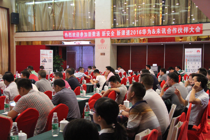 [中國,湖南長沙,2016年9月22日] 由湖南未訊網絡主辦,華為長沙辦協辦的2016年華為&未訊共進長沙合作伙伴大會正式在紫東閣華天大酒店隆重召開。大會以新數通新安全新渠道”為主題,展開全程會議,并取得圓滿成功